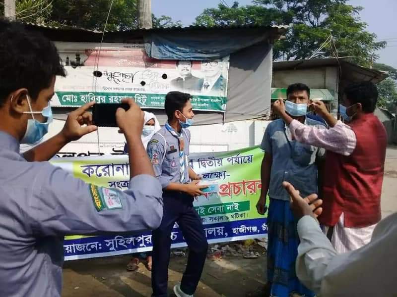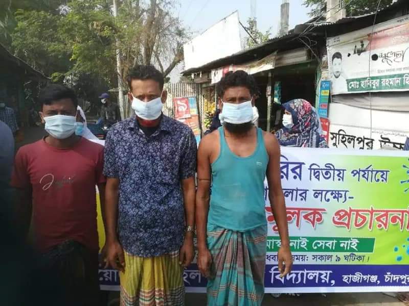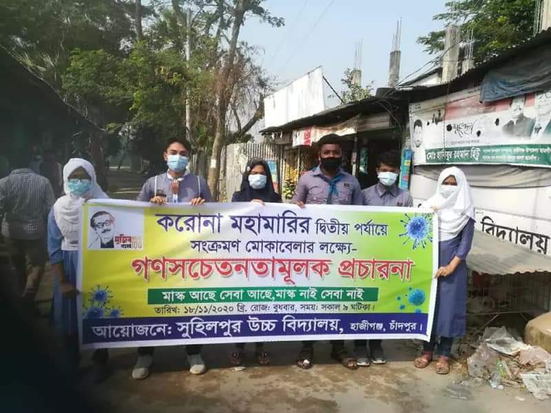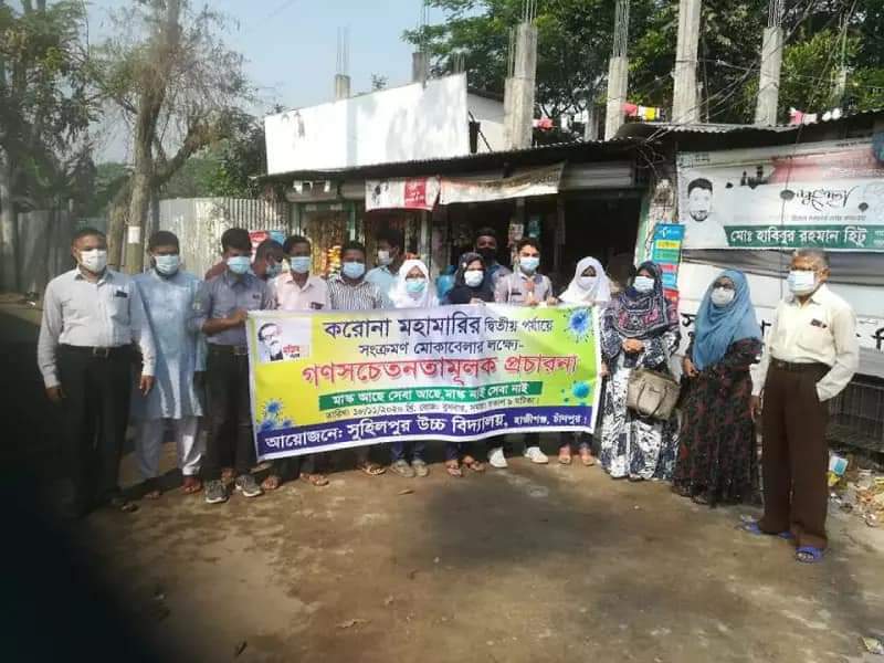 করণা মহামারির দ্বিতীয় পর্যায়ে সংক্রমণ মোকাবেলার লক্ষ্যে গণসচেতনতামূলক প্রচারণায় সুহিলপুর উচ্চ বিদ্যালয়ের শিক্ষক ও ছাত্র-ছাত্রীবৃন্দ ।