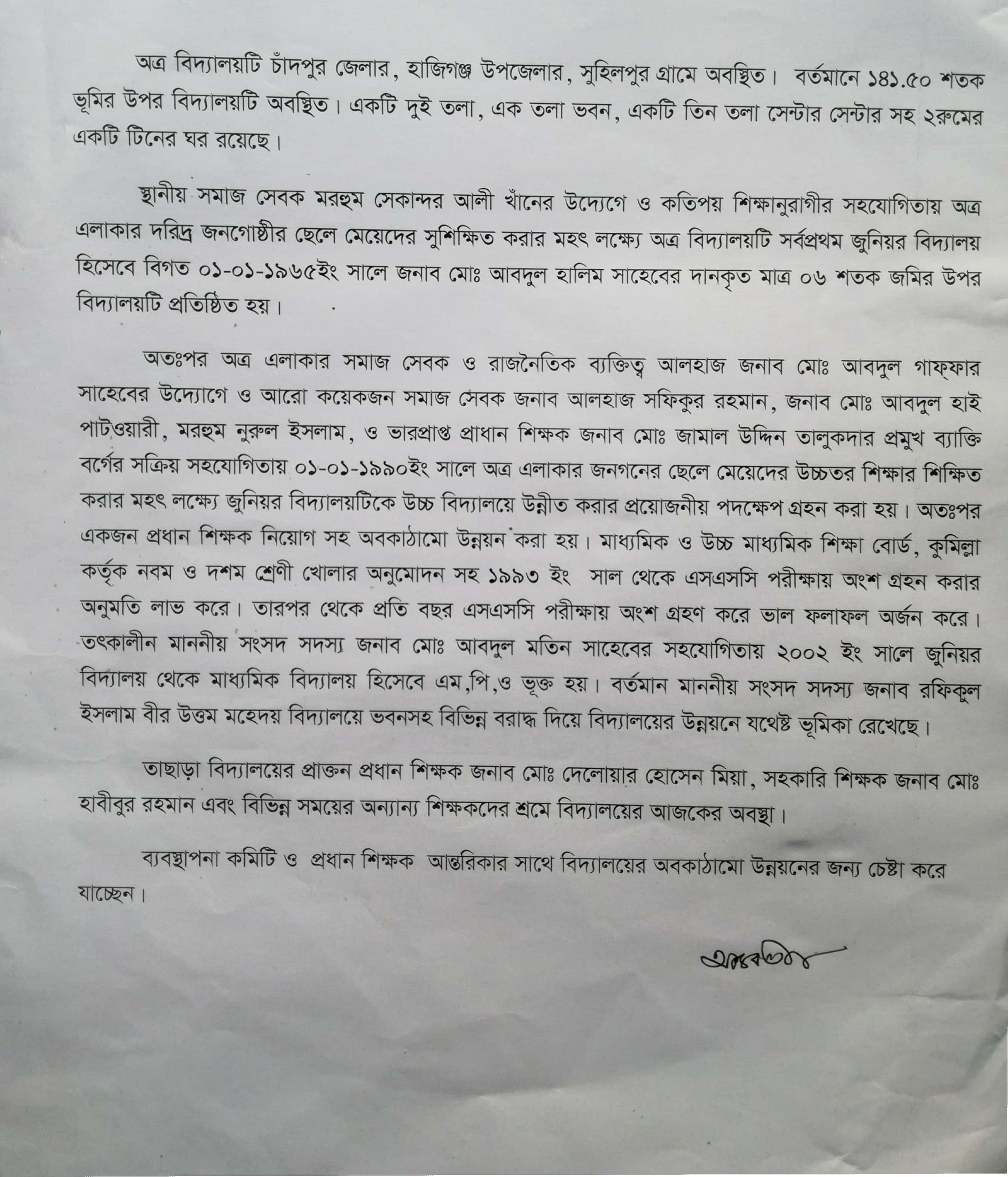সুহিলপুর উচ্চ বিদ্যালয়ের ইতিহাস