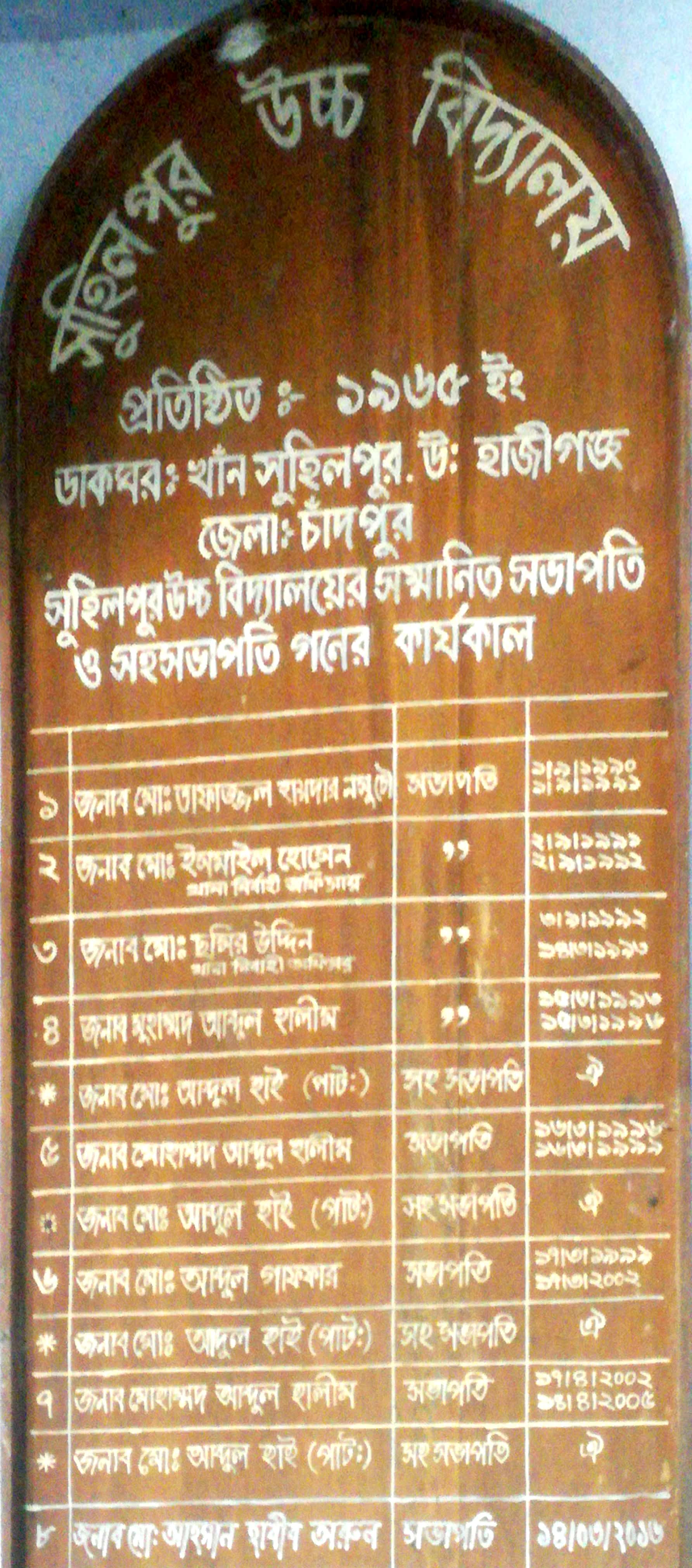 সুহিলপুর উচ্চ বিদ্যালয়ের সভাপতি গনের কার্যকাল ।